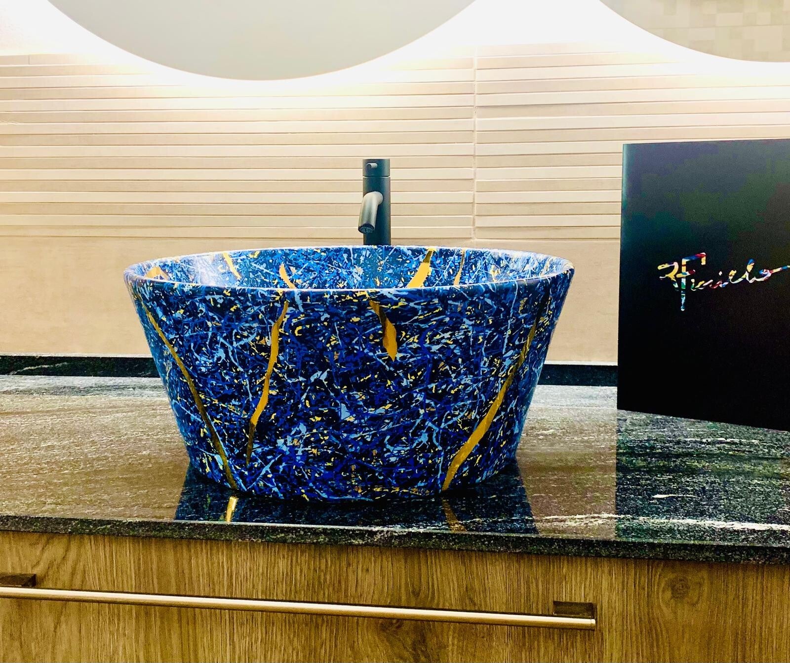 È dall'esigenza di vivere l'arte che nasce l'intuizione di creare la Collezione bagno Rossella Fiorillo®. Materializzare un'idea è sempre stata per me una magia, dalla mente alla tela un passaggio diretto... ma non questa volta. Non avevo fatto i conti con la legge dei fluidi, con la gravità: la vera sfida era riprodurre il Dripping su superfici verticali, concave senza avere nessun effetto di colatura.